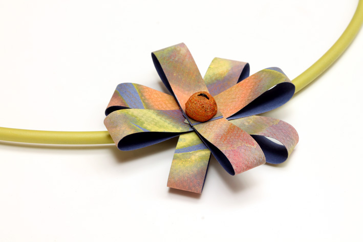 Vous ne regarderez plus jamais votre système d’irrigation de la même manière (les tubes en plastique recyclés et peint sont à l’origine des petits tuyaux d’irrigation, très communément utilisés en Australie). Un collier qui va bien avec l’ambiance de printemps du moment