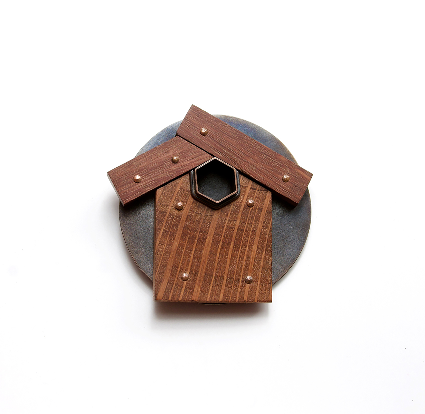 I expressed my relationship with France through the use of the hexagon shape in chain elements and other parts of my works. France is commonly called “the hexagon” because the map of the country fits into the geometric shape. I made the brooch Francaustralian 3 during the first Covid-19 lockdown and I also call it “French at heart”. I was safe in Western Australia witnessing on the daily news the deadly damage of the first wave of the pandemic in France.